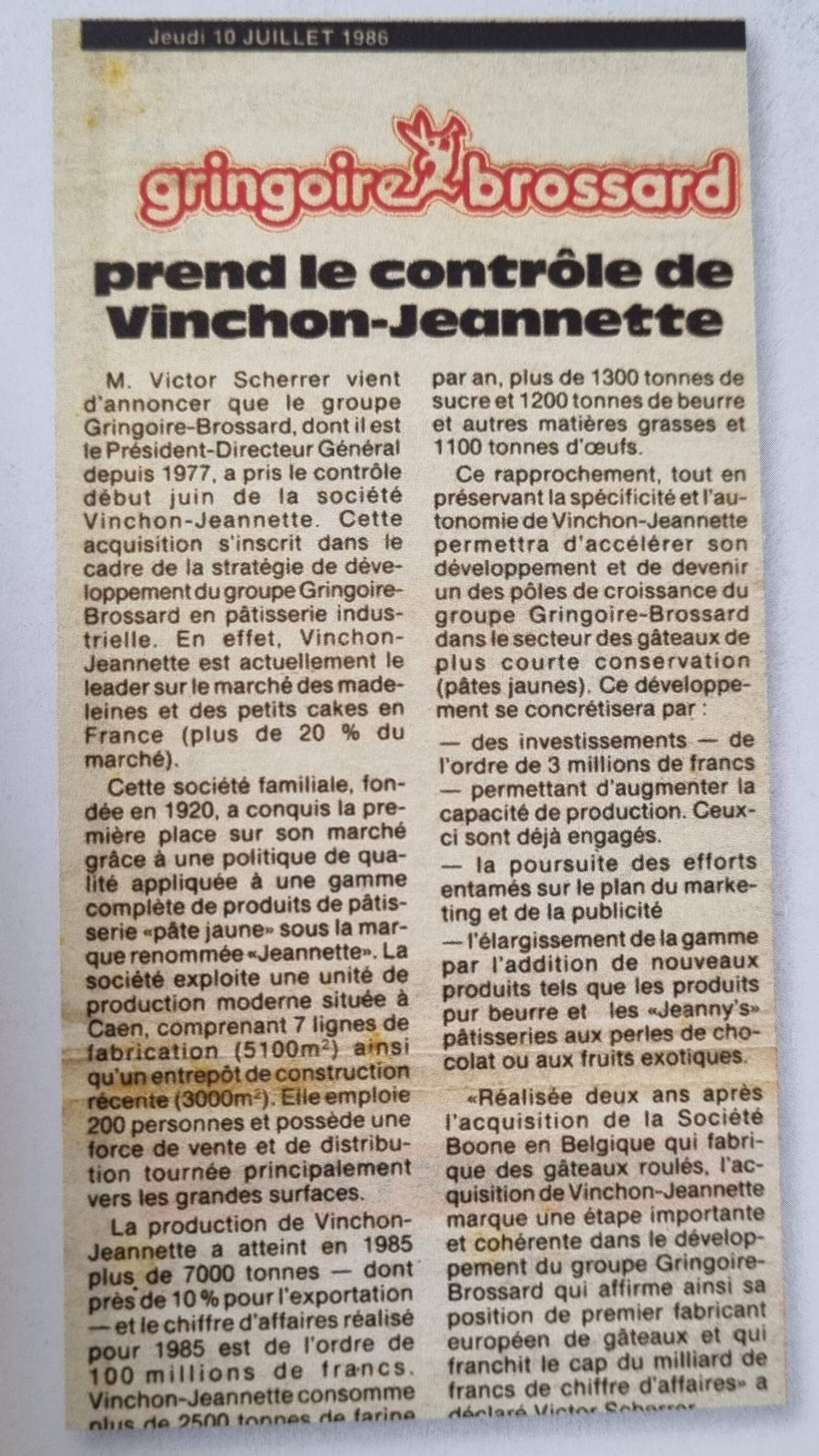 En 1986, les frères Vinchon cèdent l’affaire au groupe Brossard. L’année suivante, Victor Scherrer devient PDG du groupe avec la volonté de devenir leader sur le marché de la pâtisserie industrielle. Le choix est fait de développer les marques les plus fortes et les secteurs les plus rentables.