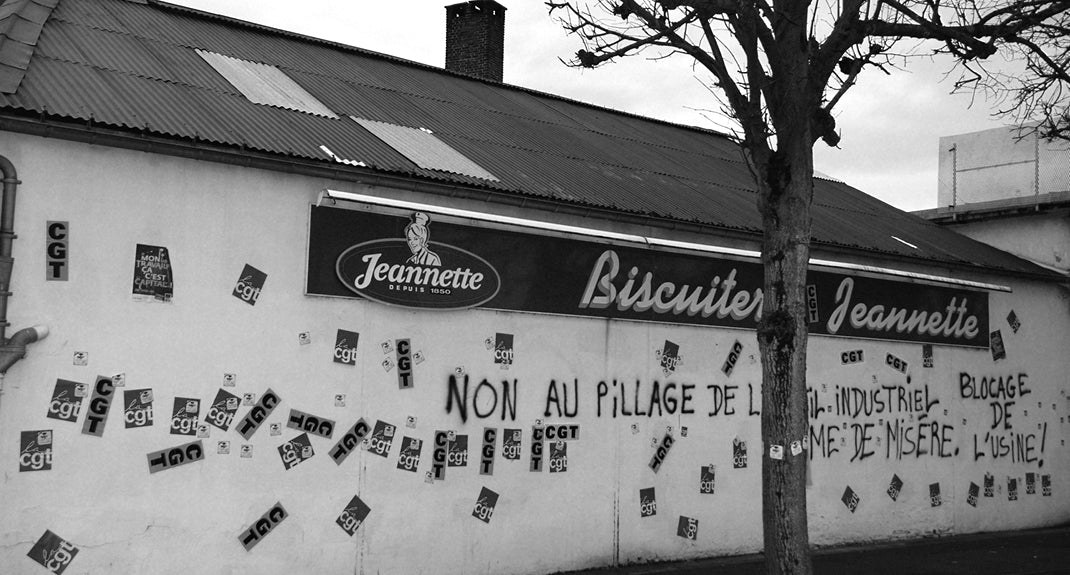 En 2013, la Biscuiterie Jeannette est liquidée et les salariés sont licenciés. Ces derniers occuperont l’usine pendant 344 jours afin d’éviter la vente aux enchères des outils de production.