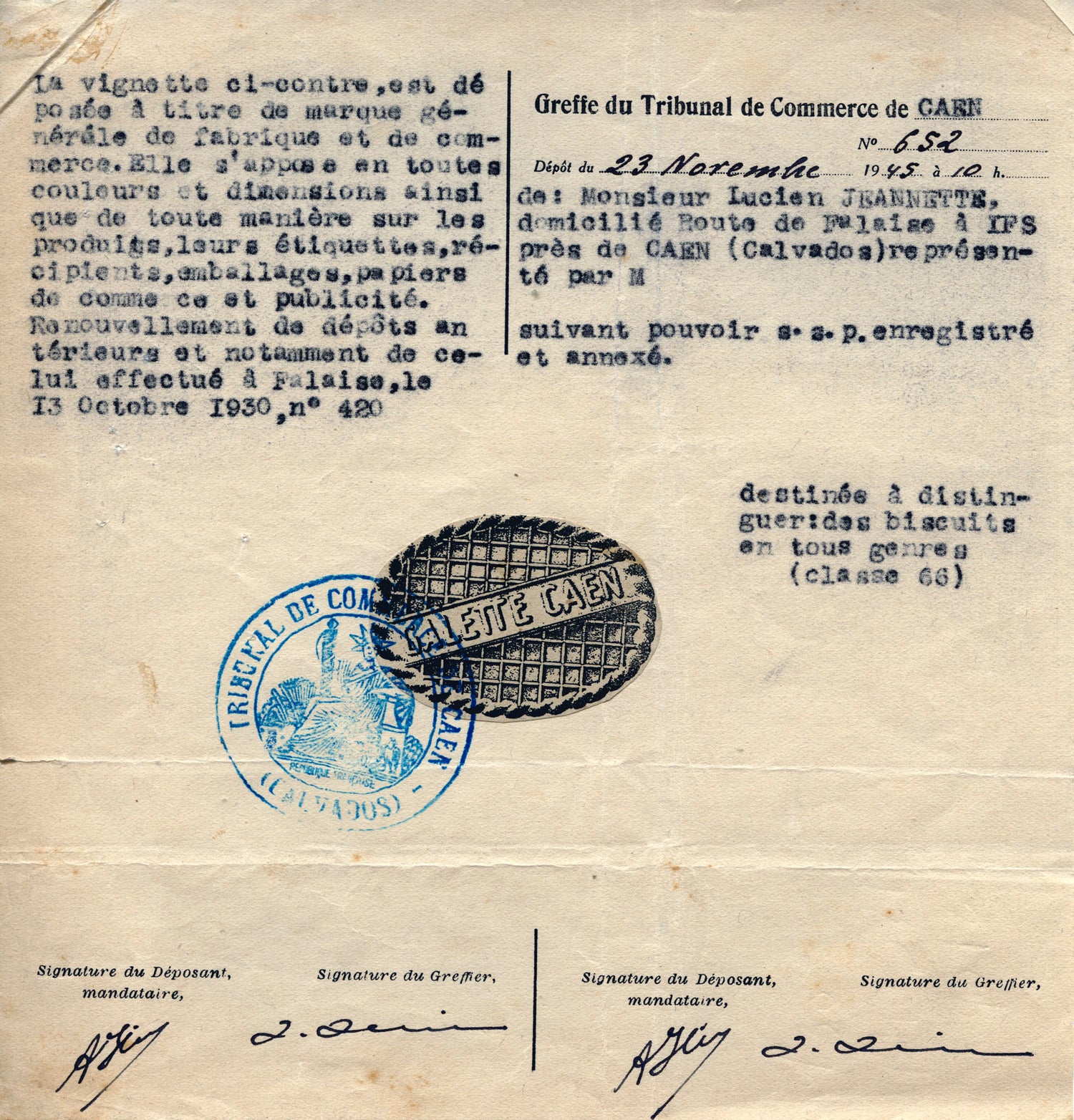 En 1927, Lucien Jeannette reprend la Biscuiterie Mollier et la baptise Biscuiterie Moderne du Calvados. La production de la biscuiterie se diversifie : gâteaux secs, croquettes aux amandes, galettes de Caen, boudoirs et sablés.