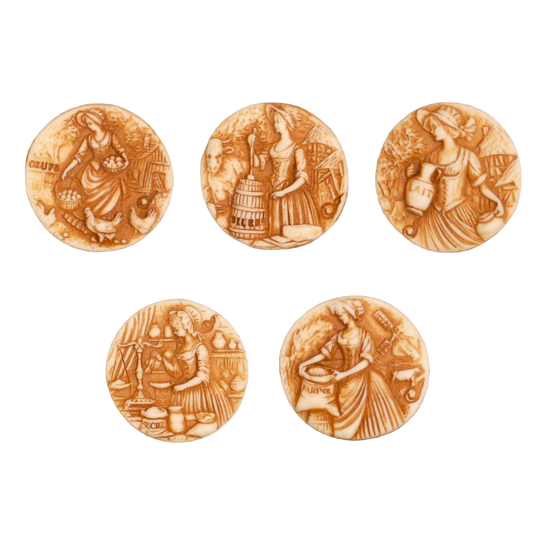 Découvrez notre collection 2026 de 5 fèves artisanales normandes confectionnées au Havre par Midgard, l'un des derniers artisans céramistes de France. Chaque fève représente chacun de nos ingrédients :